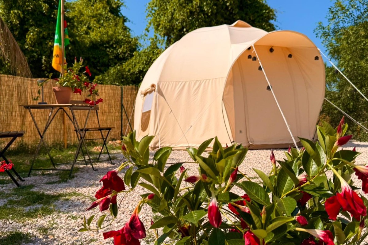 Hai sempre desiderato campeggiare in modo lussuoso e speciale? Allora vivi l'esperienza glamping definitiva in uno dei nostri alloggi arredati. Vivi la vera sensazione del campeggio in una yurta, una tenda glamping o una tenda a campana, ma con il lusso di una casa vacanze. Niente più problemi con pali della tenda o materassini che perdono: la tua lussuosa tenda glamping è completamente arredata e dotata di ogni comfort. Non ti resta che preparare la valigia! Rimani al caldo tra gli altri campeggiatori e goditi il comfort che i nostri alloggi al Glamping La Yurta nel Verde hanno da offrire. Questo rende il campeggio lussuoso, confortevole e accogliente! Questo alloggio può essere prenotato in bassa stagione a partire da € 50 a notte per due persone. In alta stagione € 70 a notte per due persone.